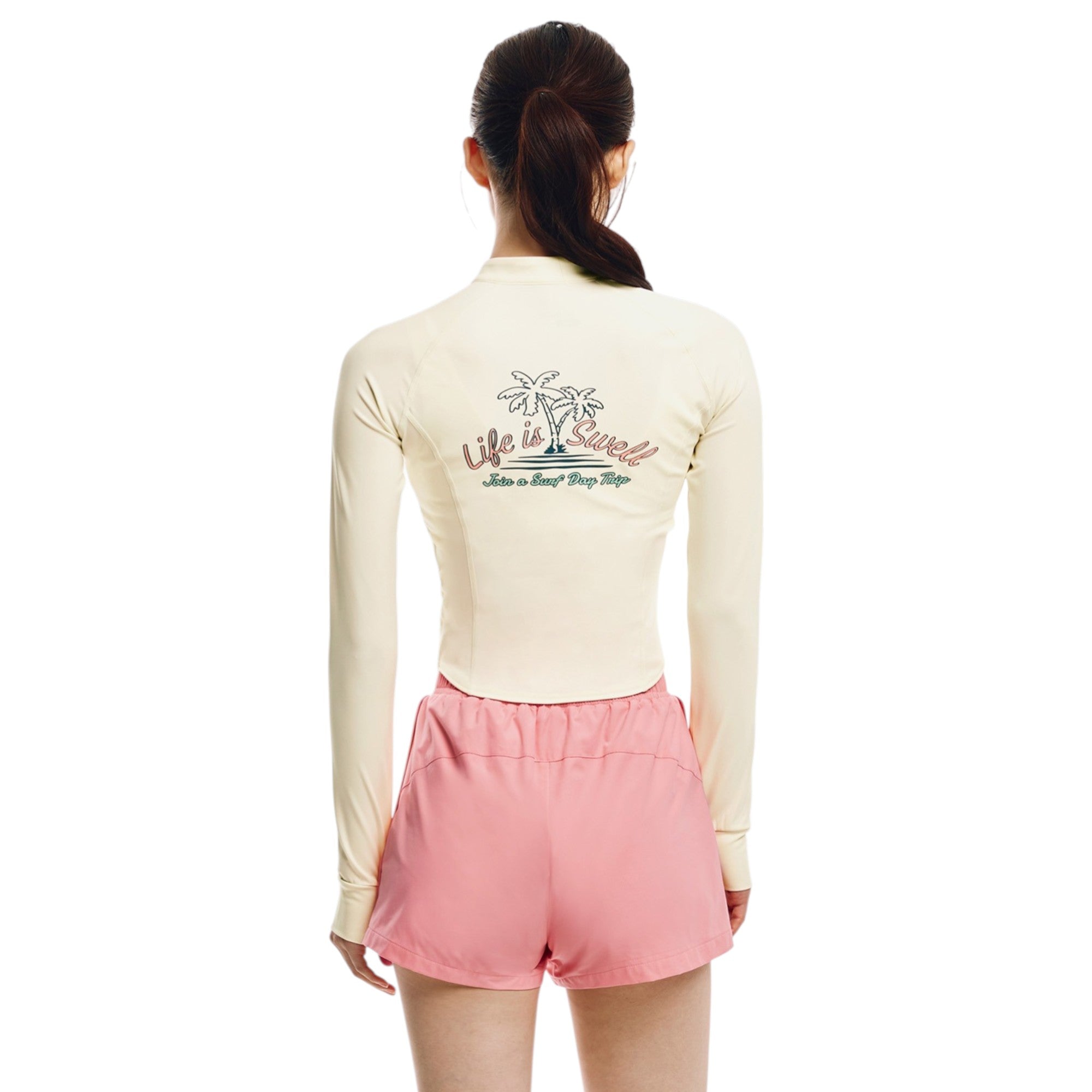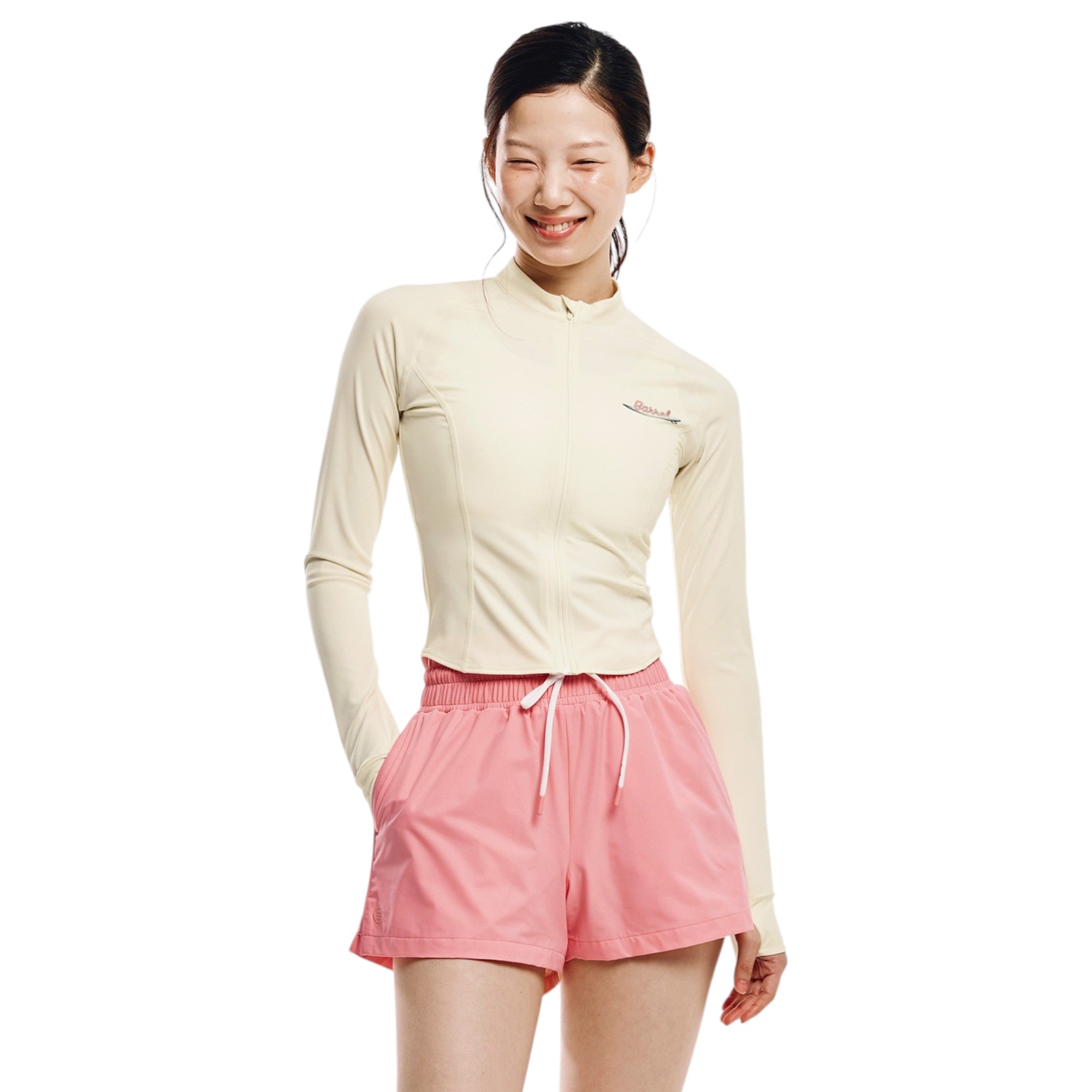 Barrel Women Artwork Crop Zip Rashguard-IVORY