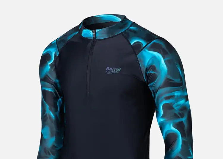 The Barrel Mens Abyssal Half Zip Up Rashguard can be mixed and matched to suit different activities creating your own unique style. UPF 50+ protection and great styling means you are protected and looking good!